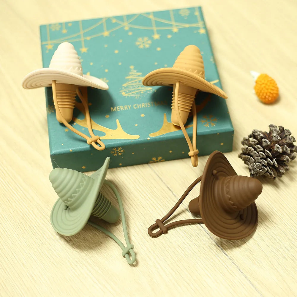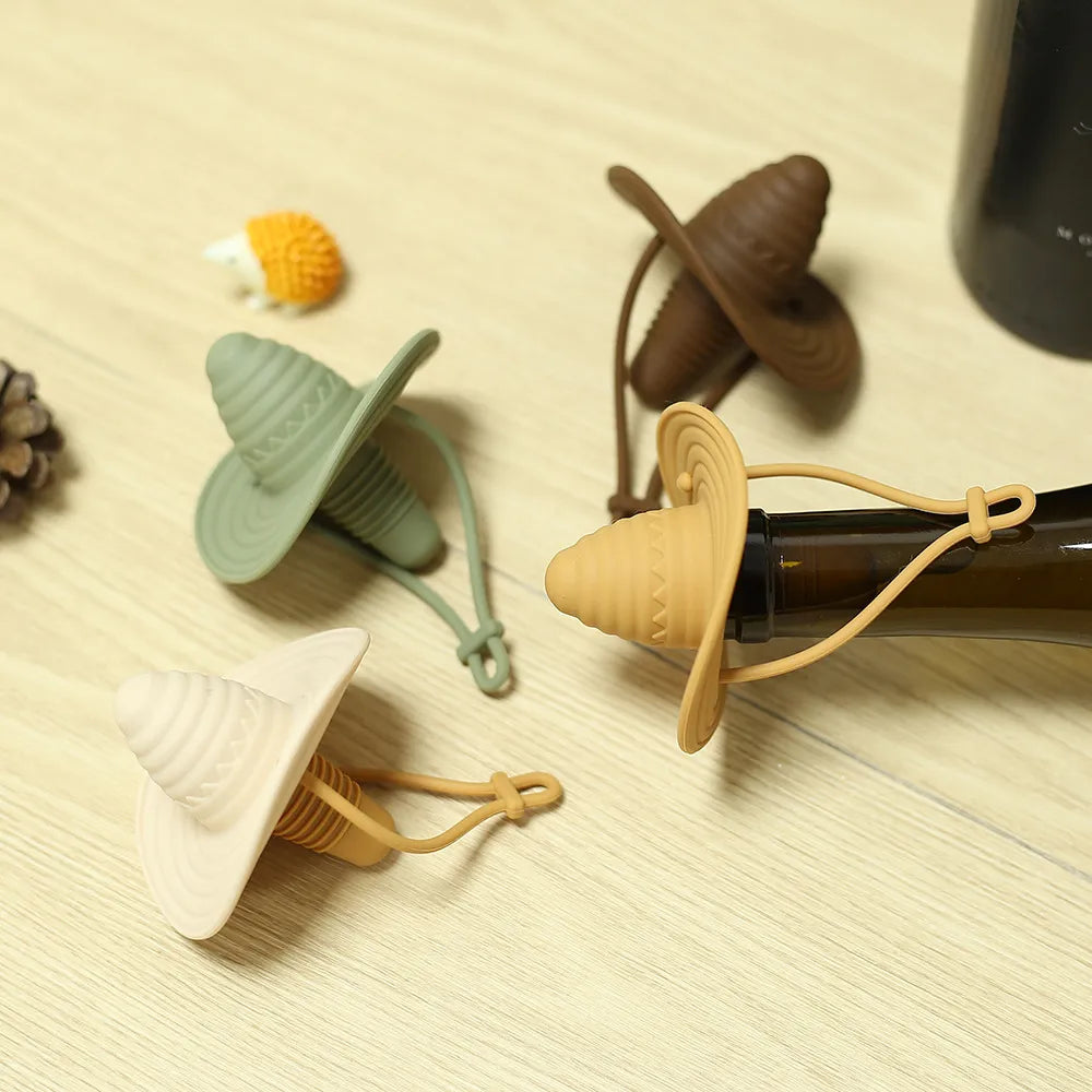 Dieses Set besteht aus vier farblich unterschiedlichen Weinstöpseln in Form von Cowboy- oder Sombrero-Hüten. Gefertigt aus lebensmittelechtem Silikon eignen sie sich für Flaschenöffnungen bis 2,3 cm und verbinden verspieltes Design mit zuverlässigem Verschluss. Dieses Produkt wird im 4er-Set geliefert.